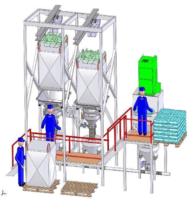 • 噸袋卸料站工作原理及操作流程 噸袋卸料站是用來實現袋裝散料的卸料功能,為半自動設備,其工作原理及操作流程為: 1、其工作原理如下:拆包站由框架、拆包料斗、電動葫蘆、除塵器、旋轉送料閥(根據后面工序要求設置此閥門)等組成。 2、電動葫... 查看詳情